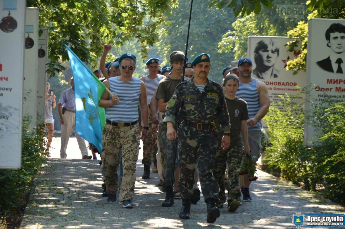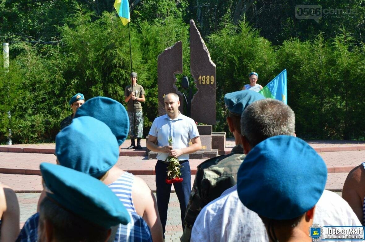 В Нікополі, на честь цього свята, біля пам’ятника «Чорний тюльпан», пройшов урочистий мітинг та покладання квітів за участі ветеранів та бійців ВДВ, їх сімей, представників громадськості та влади. Юрій Сокол, заступник міського голови Андрія Фісака, щиро привітав їх із професійним святом та побажав міцного здоров’я, злагоди та аби навички військовослужбовців використовувалися лише для мирних цілей.