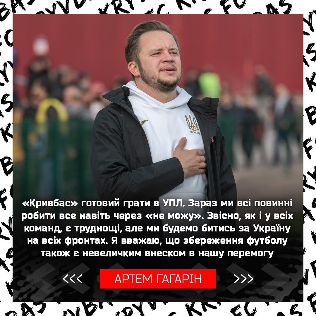 Віцепрезидент #ФККривбас Артем Гагарін заявив, що криворізька команда готова грати в УПЛ та підтримує старт чемпіонату в будь-якому форматі
